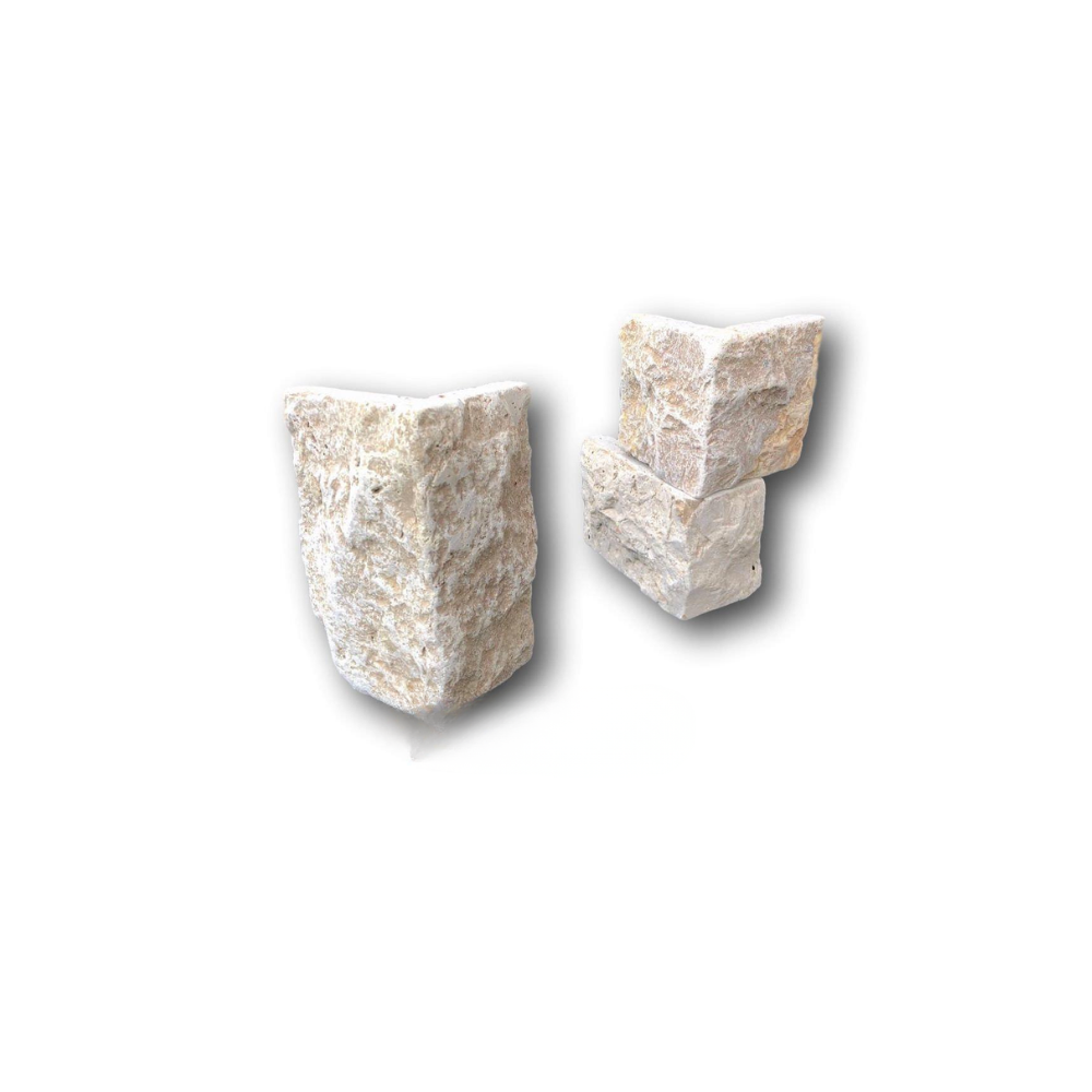Gli angoli per rivestimento in pietra di Trani Anticata presentano variazioni naturali di colore dovute all'estrazione, garantendo unicità estetica ad ogni pezzo. Questa pietra offre robustezza e carattere, ideale per applicazioni che richiedono un materiale resistente e dal fascino autentico.