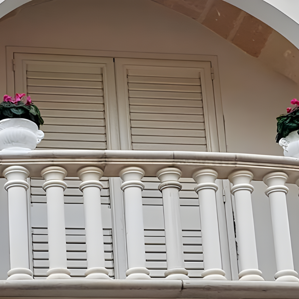 Le balaustre sono realizzate in un innovativo mix di cemento e resina, garantendo resistenza e durabilità senza la presenza di ferro all'interno. Questa scelta costruttiva previene problemi di corrosione, assicurando una lunga vita al prodotto in ambienti esterni e interni. Ideali per valorizzare ogni tipo di architettura con un tocco di eleganza contemporanea e solidità comprovata.