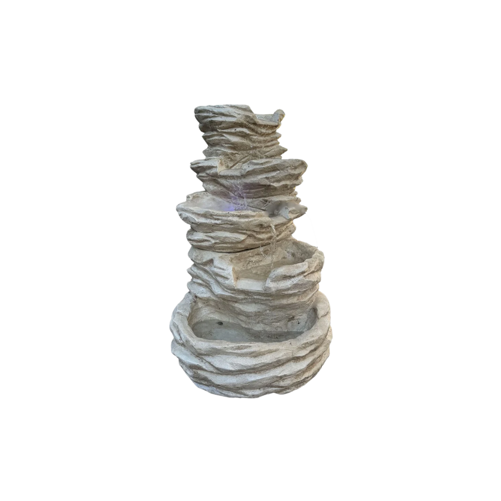 - Sistema a Ricircolo: garantisce il movimento continuo dell'acqua tra i vari livelli della fontana, offrendo un suono rilassante e rigenerante.