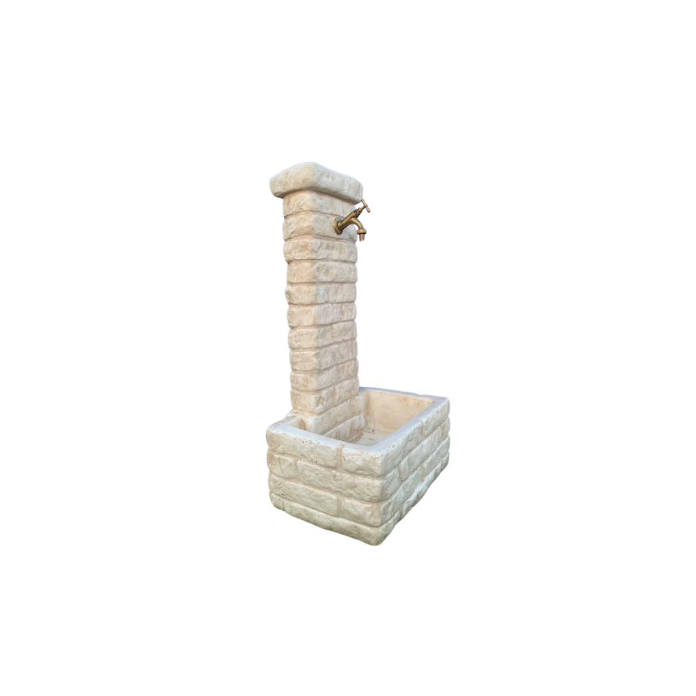 Realizzata in cemento bianco con un design rustico, questa fontana mattoncino è l'elemento ideale per valorizzare giardini e spazi esterni. Disponibile nei colori bianco o beige antichizzato, è priva di rubinetto, permettendovi di personalizzare un piacere. Trattato per resistere alle intemperie, garantisce durata e affidabilità nel tempo anche all'aperto.
