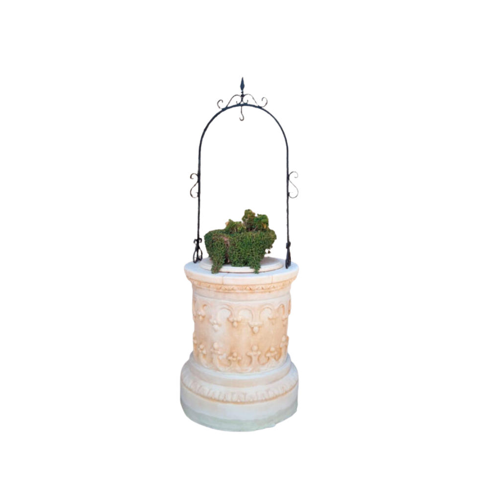 Il pozzo modello Romanico unisce l'eleganza del cemento bianco con la raffinata texture della polvere di marmo, garantendo resistenza e un aspetto estetico senza tempo. Ideale per arricchire il giardino, offre una struttura solida che resiste alle intemperie, valorizzando ogni spazio esterno con uno stile classico e raffinato.