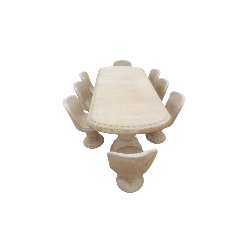 Il tavolo ovale con sedie in cemento unisce robustezza e design contemporaneo, garantendo una soluzione d’arredo resistente e durevole sia per ambienti interni che esterni. La struttura in cemento assicura stabilità e facilità di manutenzione, mentre il design compatto favorisce la convivialità e l’ottimizzazione dello spazio. Ideale per chi cerca funzionalità senza rinunciare a uno stile moderno e minimalista.