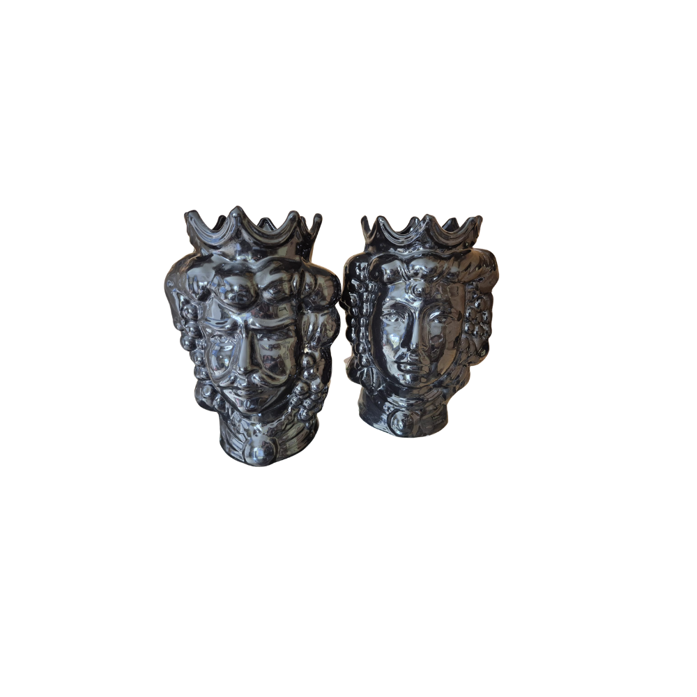 Le teste di moro in ceramica rappresentano un simbolo apotropaico, tradizionalmente utilizzato per allontanare le negatività. Questi oggetti artigianali raccontano la ricca storia e le profonde tradizioni della Sicilia, incarnando un legame autentico con la cultura locale. Perfetti per chi desidera aggiungere un tocco di significato e personalità agli spazi domestici o agli ambienti commerciali, unendo estetica e valore simbolico in un unico elemento decorativo.